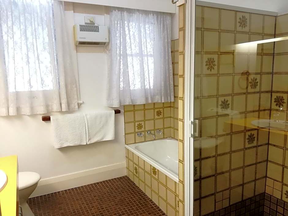 This spacious 1-bedroom family room has 1 queen-sized bed, 2 single-sized beds, a lounge area and a bathroom with a spa bath and a shower. There is a kettle, refrigerator, toaster, microwave and tea/coffee making facilities. 1 roll-away bed is available on request.
